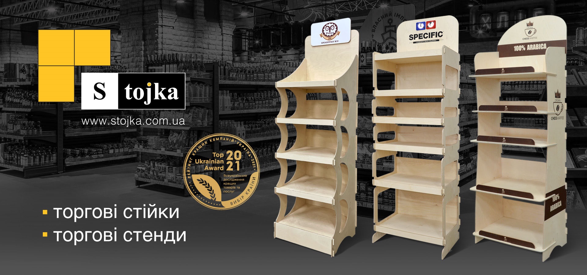 № 1в Україні з виробництва серійних та індивідуальних торгових стійок з плитних матеріалів |