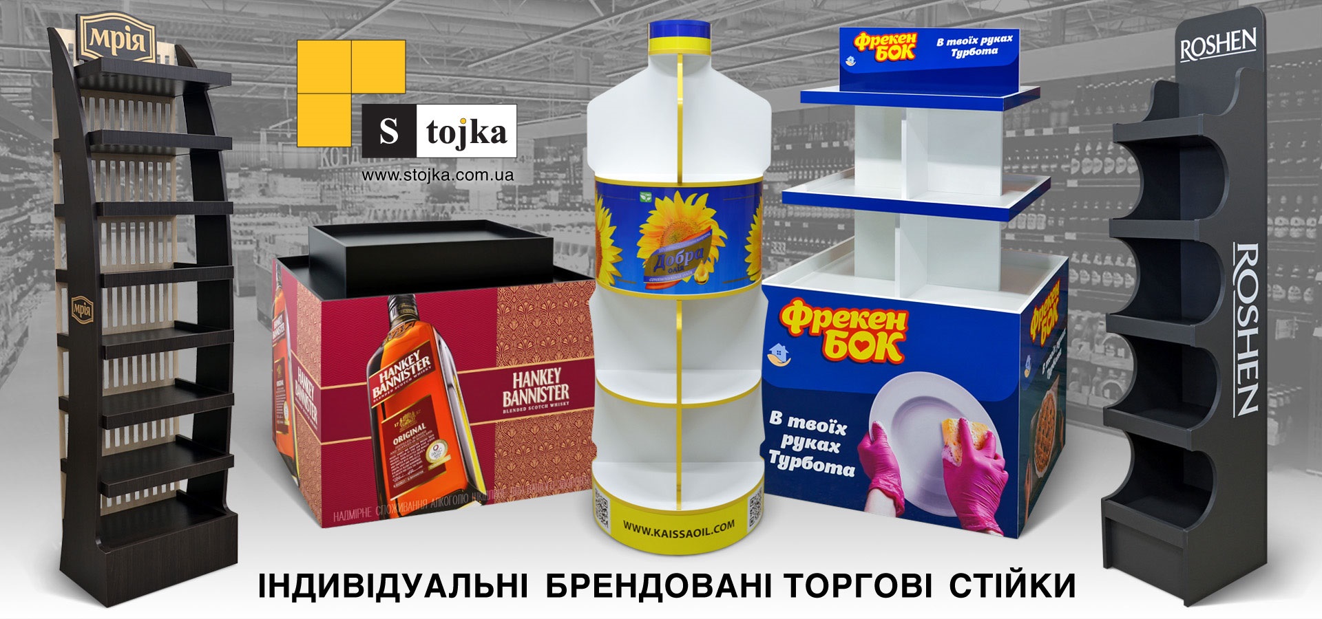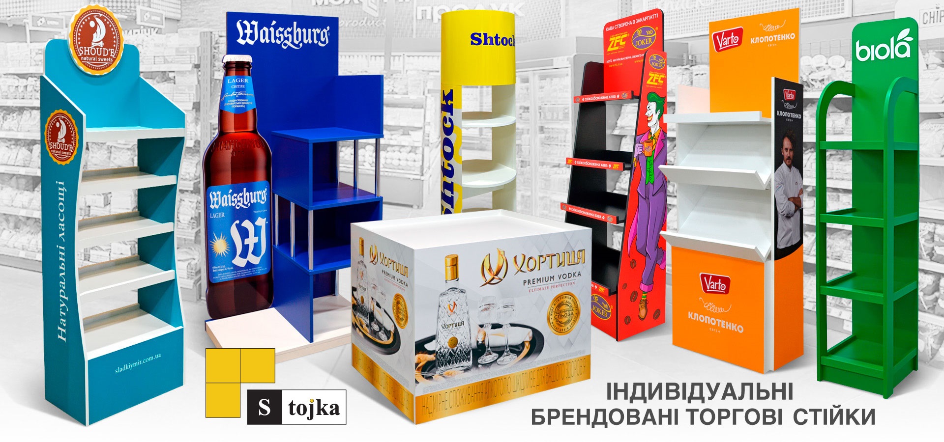 TM Stojka виробляє дуже яскраві і привабливі торгові стійки.