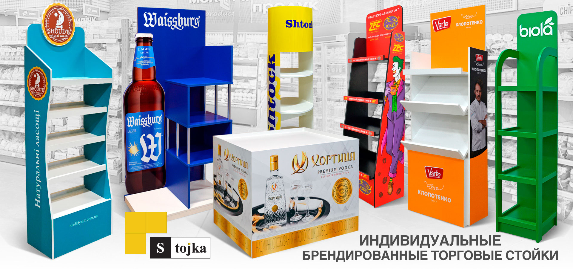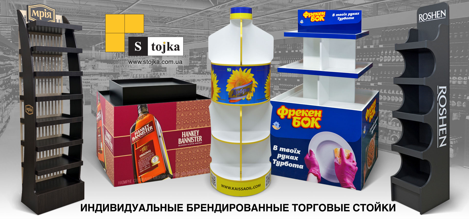 ТМ Stojka изготавливает очень яркие и привлекательные торговые стойки.