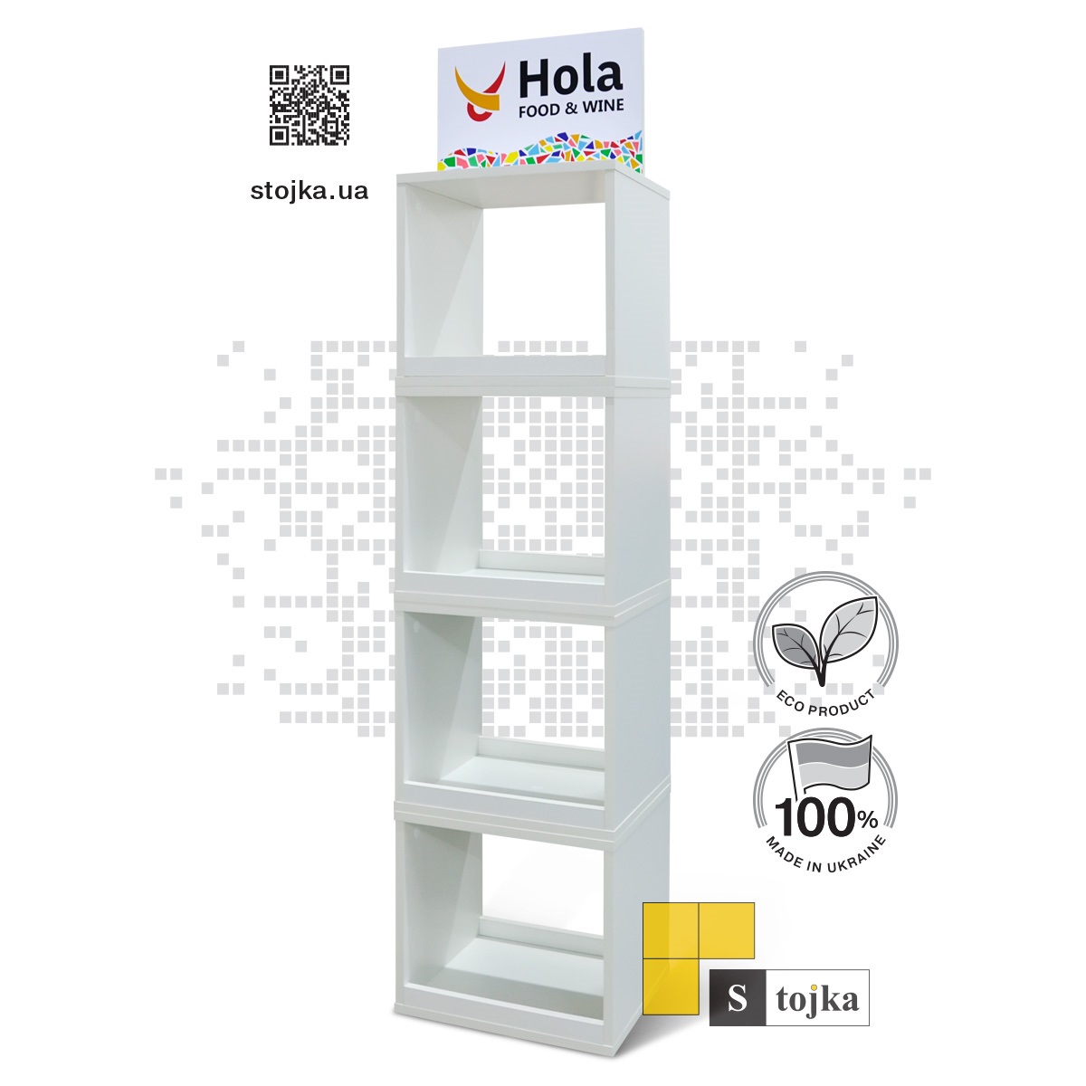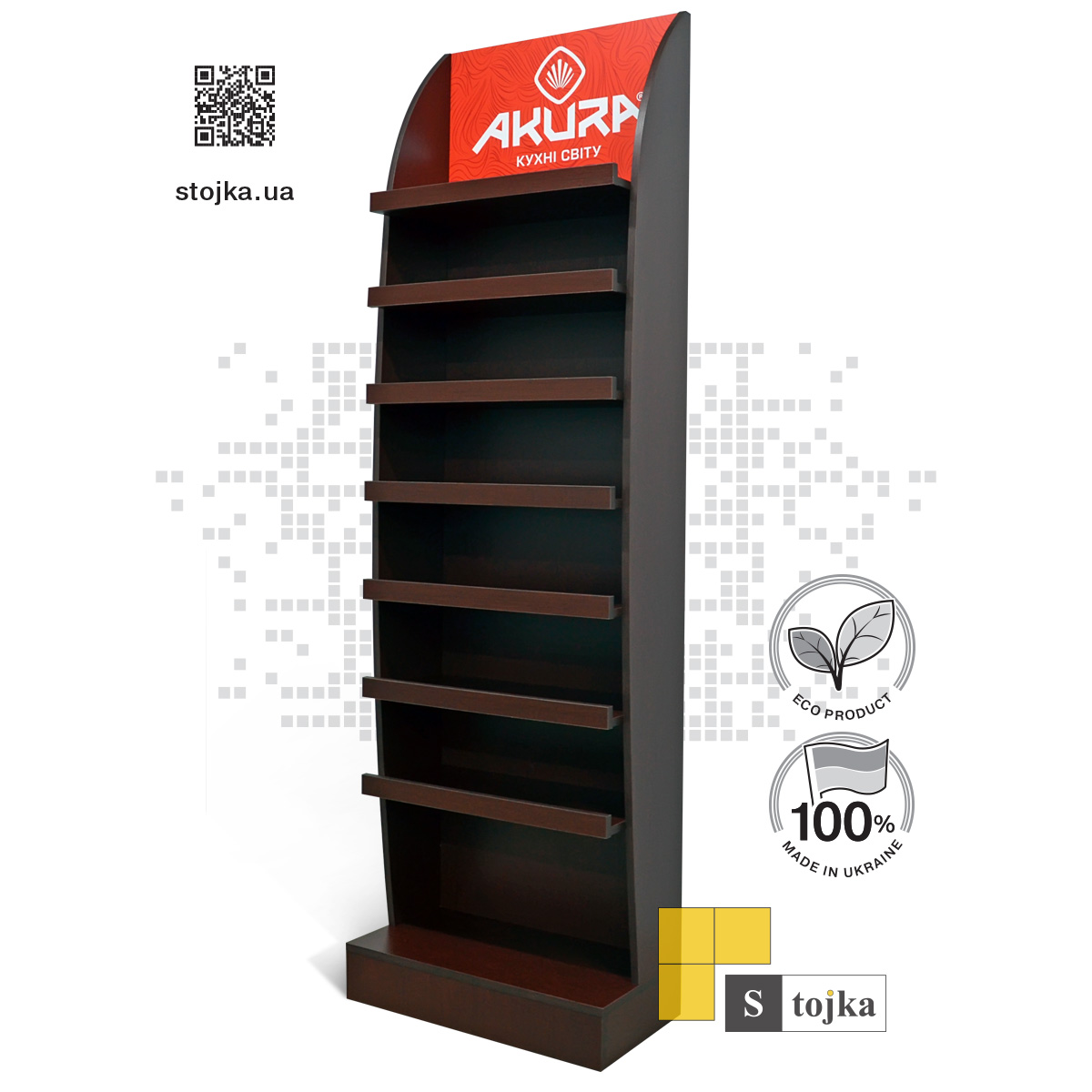 Торговая стойка из ЛДСП собирается с помощью фурнитуры. В комплекте мы предоставляем схему сборки и фурнитуру.