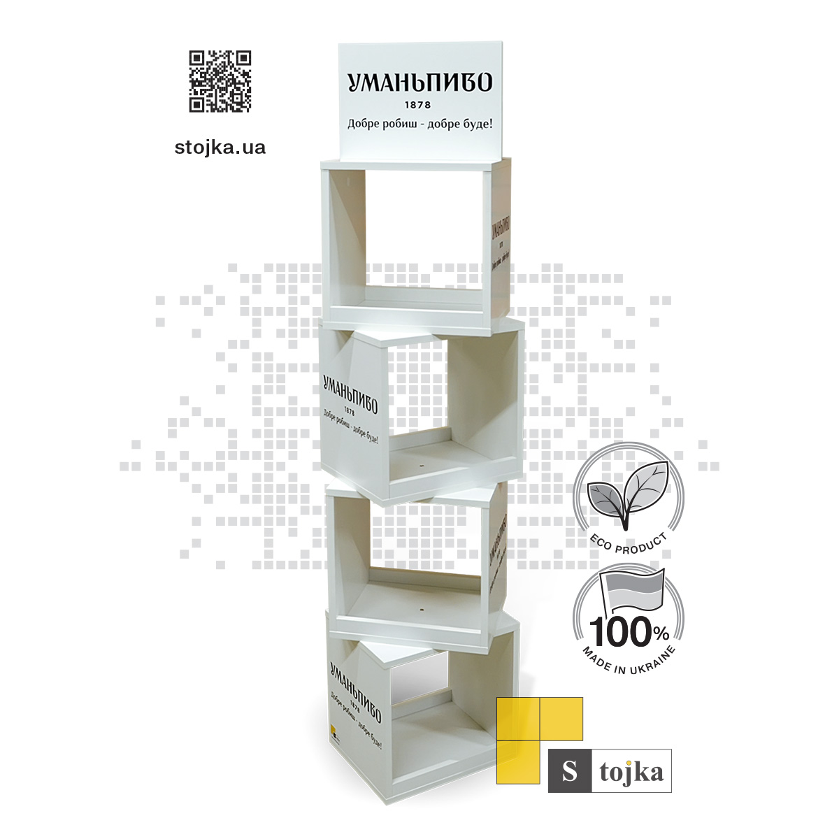 Торговая стойка из фанеры собирается на замках, без фурнитуры. В комплекте мы предоставляем схему сборки.
