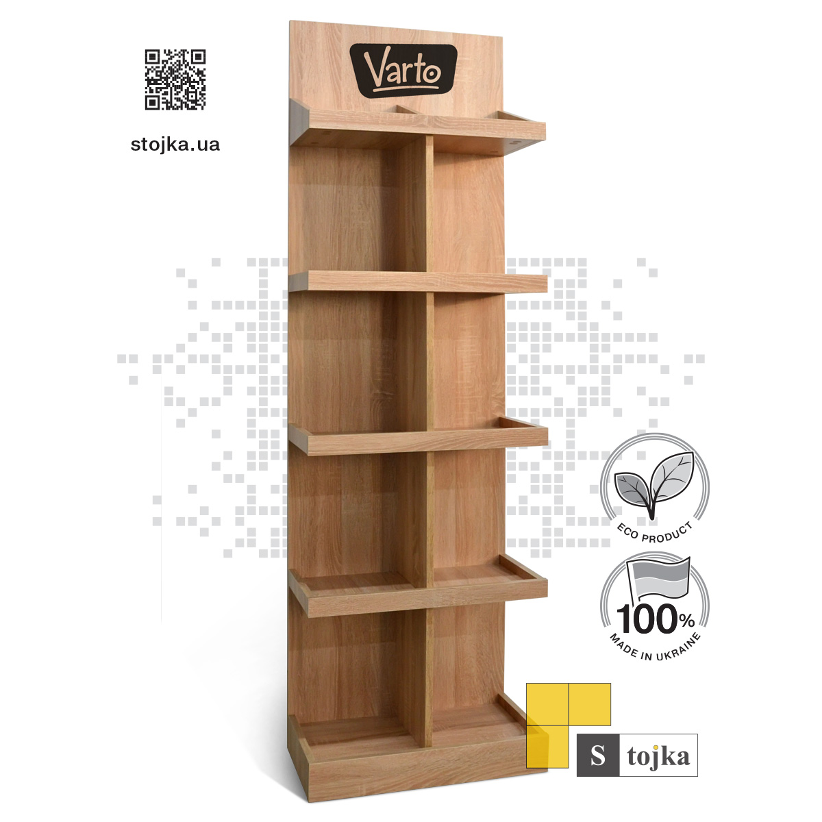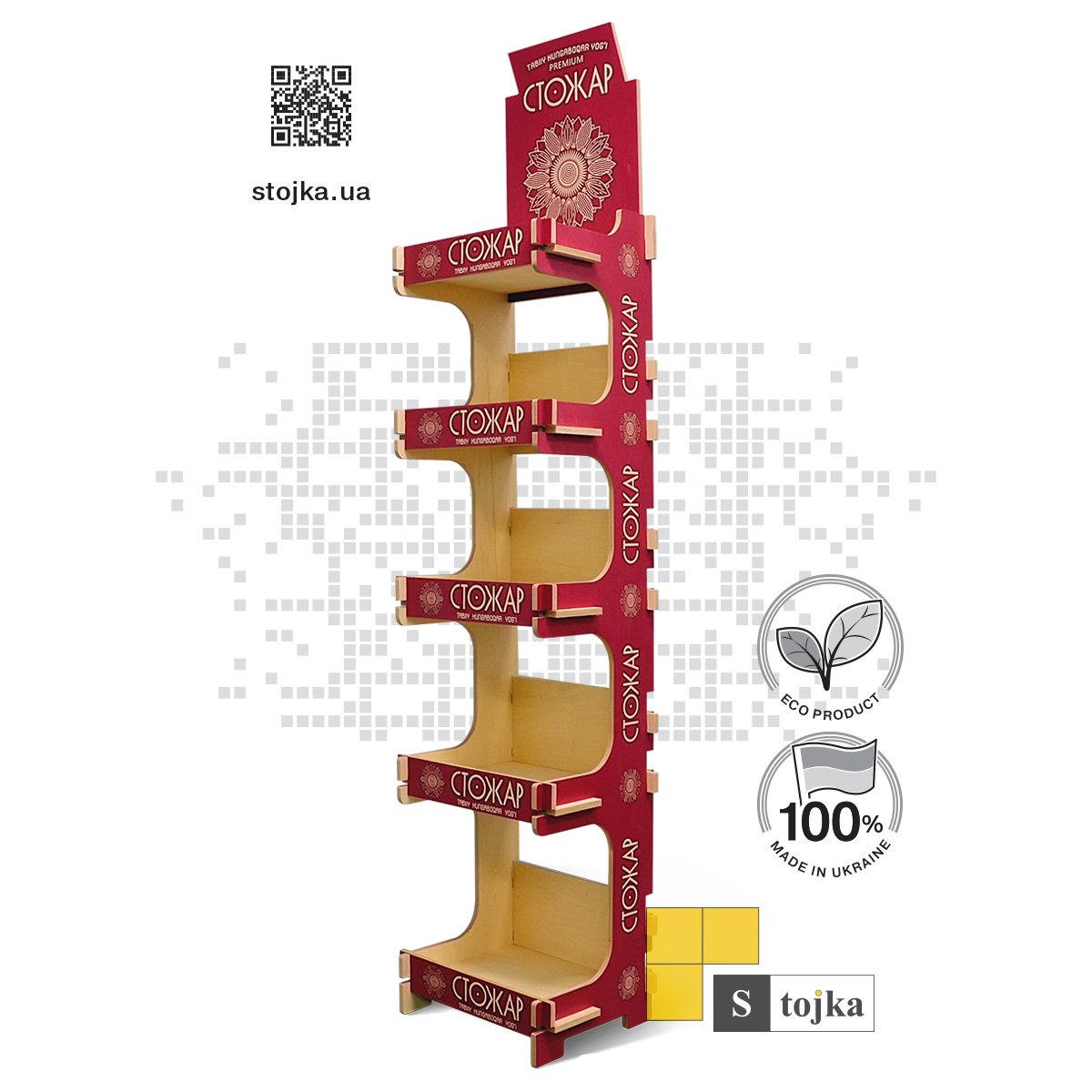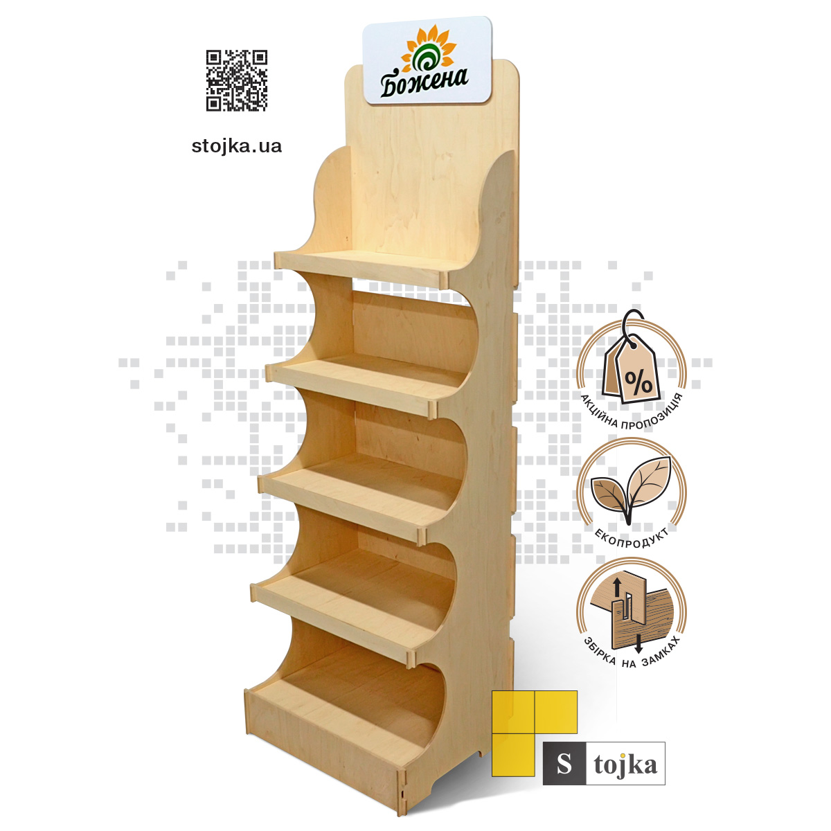 Торговая стойка из фанеры собирается на замках, без фурнитуры. В комплекте мы предоставляем схему сборки.