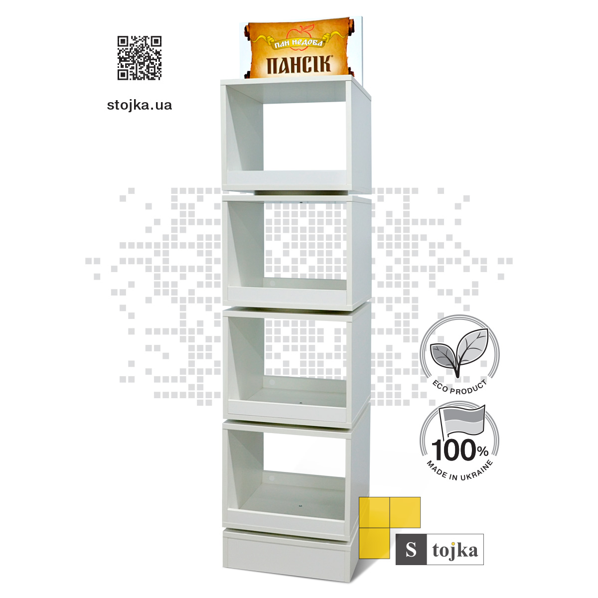 Торговая стойка из фанеры собирается на замках, без фурнитуры. В комплекте мы предоставляем схему сборки.
