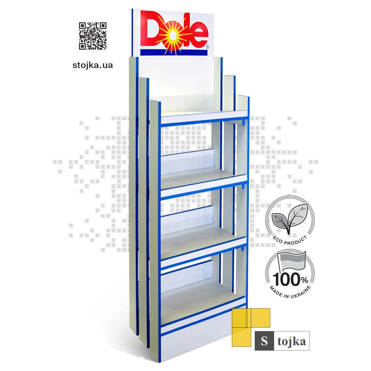 Торговая стойка из ЛДСП собирается с помощью фурнитуры. В комплекте мы предоставляем схему сборки и фурнитуру.
