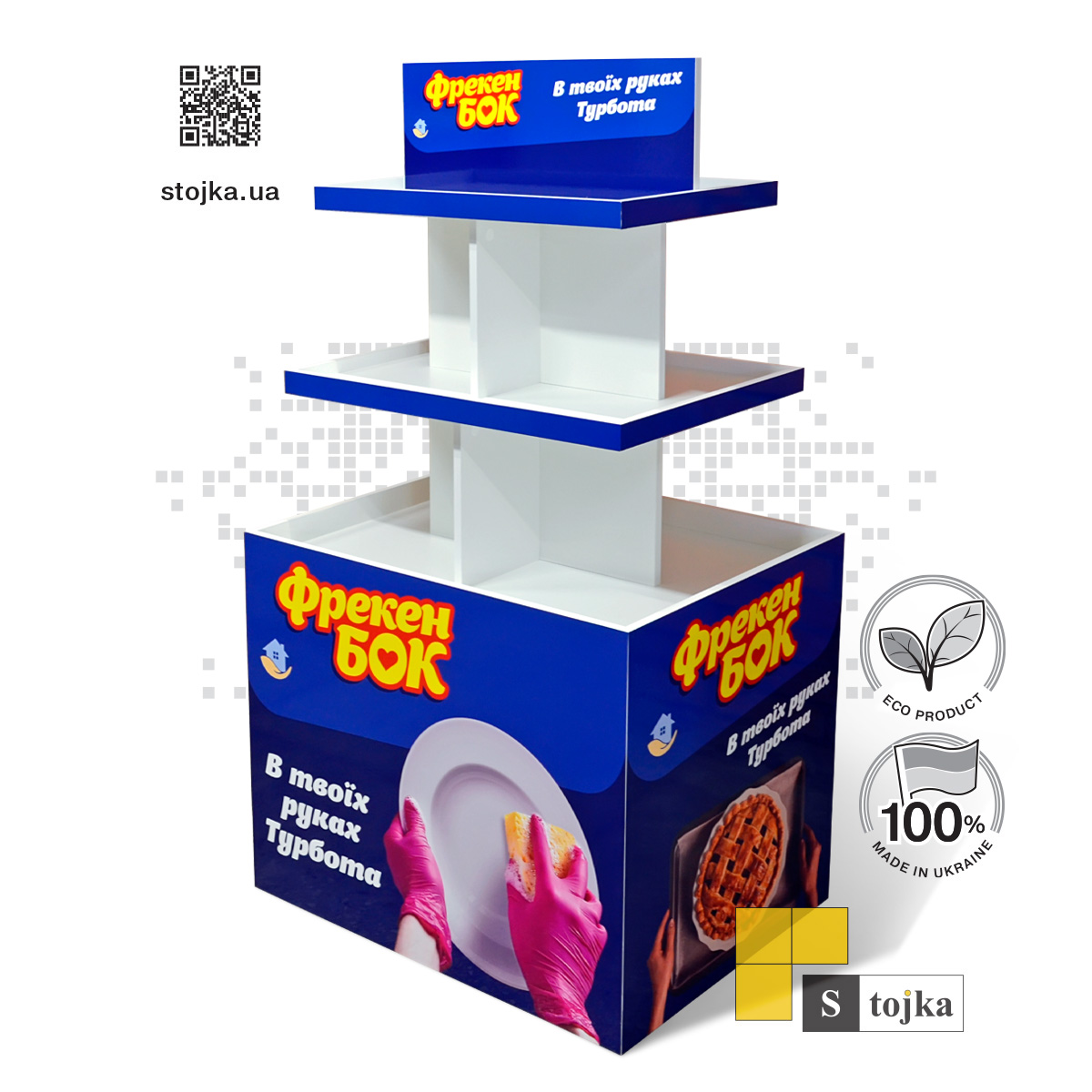 Торговая стойка из фанеры собирается на замках, без фурнитуры. В комплекте мы предоставляем схему сборки.